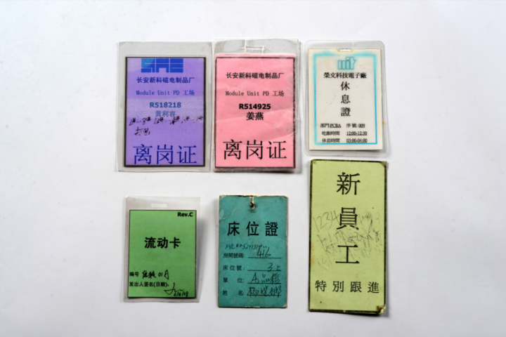 为了保存这些顷刻即逝的影像,占有兵在东莞城中村租下一间只好几浅近米的仓库。里面堆放着他拍摄的150多万张底片,以及重达6吨、与打工生计关系的物件,有旧厂牌、泛黄的信件、密集摆放的珐琅水杯……