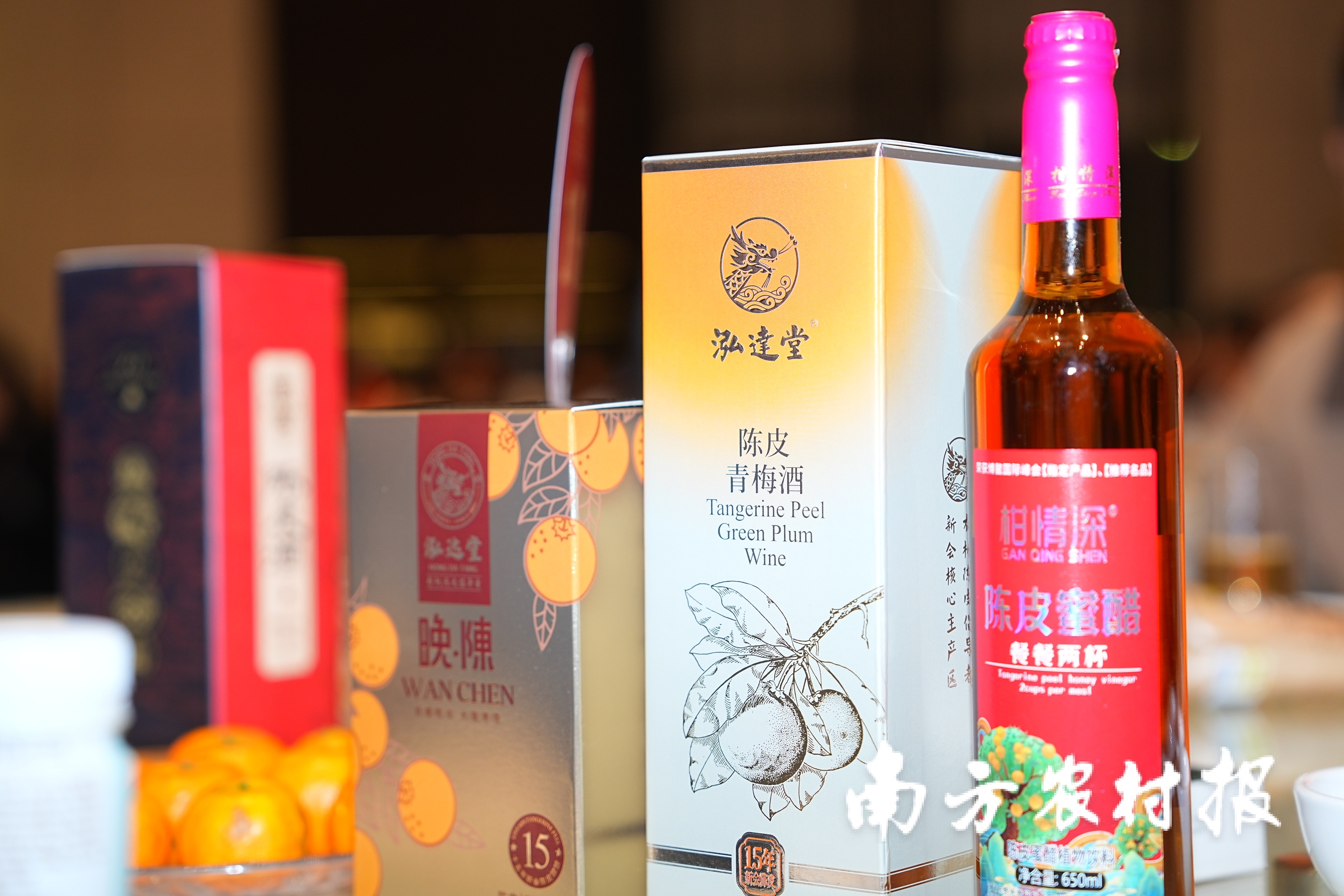 参展企业带来谈地新会陈皮、新会陈皮茶、率直的陈皮花生、可口的陈皮水......