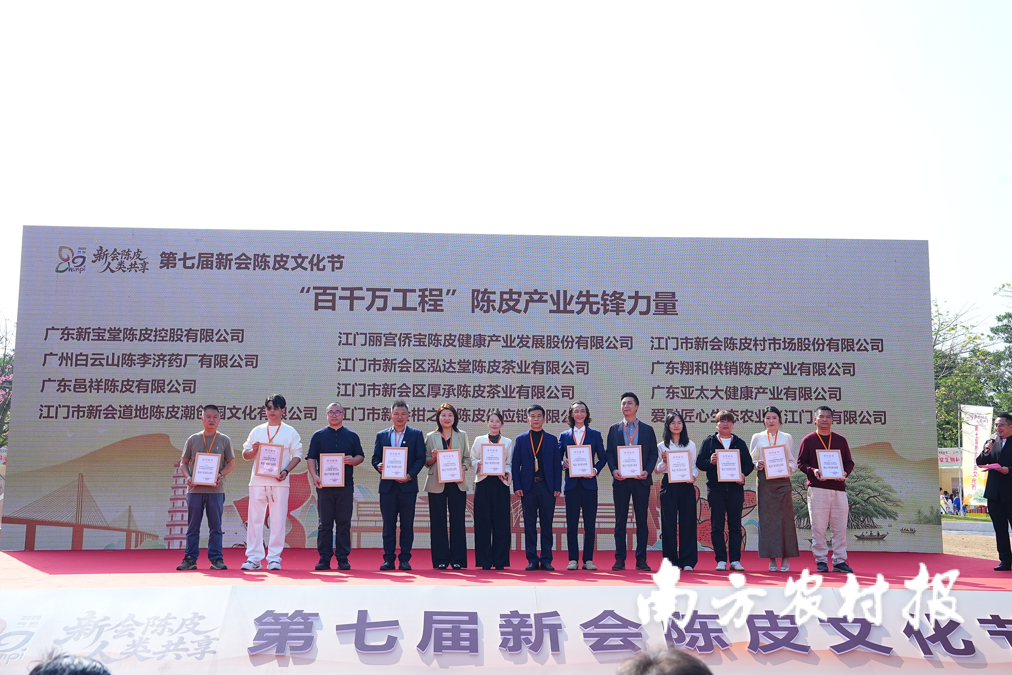 颁发“百千万工程”陈皮产业前锋力量奖。在“百千万工程”的引颈下,新会陈皮产业不单是是计策的受益者,更是积极的参与者和孝顺者。高大陈皮企业以产业兴农、以品牌富民,将一颗柑作念成了年产值超260亿元的大产业,成为了践行“百千万工程”的前锋力量。