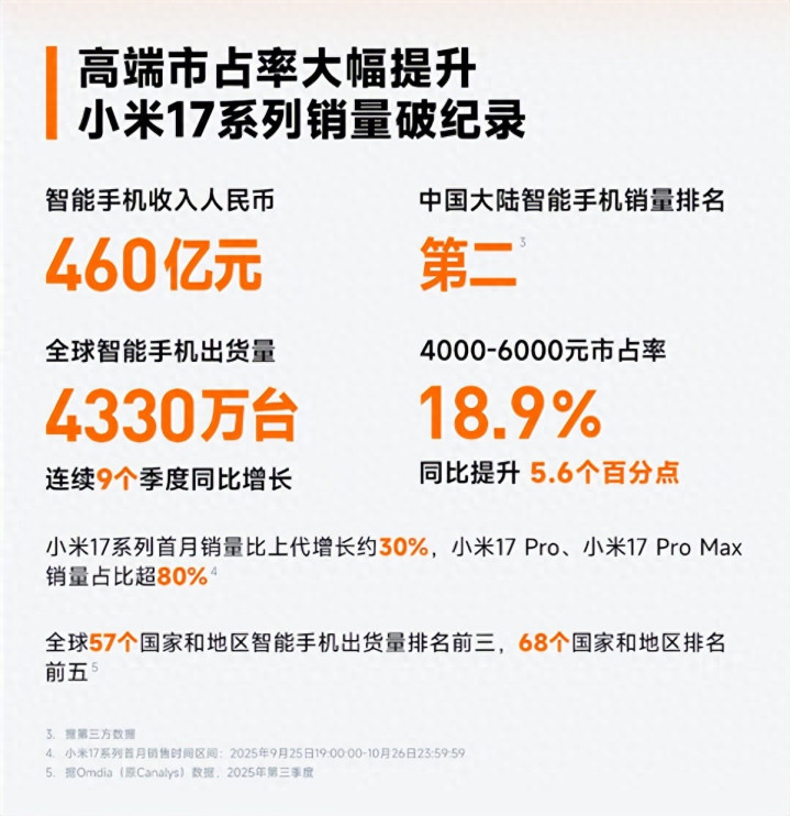 何况小米17系列第一个月的销量提高很大,这个亦然很顺利的。从这些音讯看,小米高端是顺利的,另外研发插足险些是莫得敌手的,要点4000到6000价位,份额到了快19%,这个确乎是很高的。