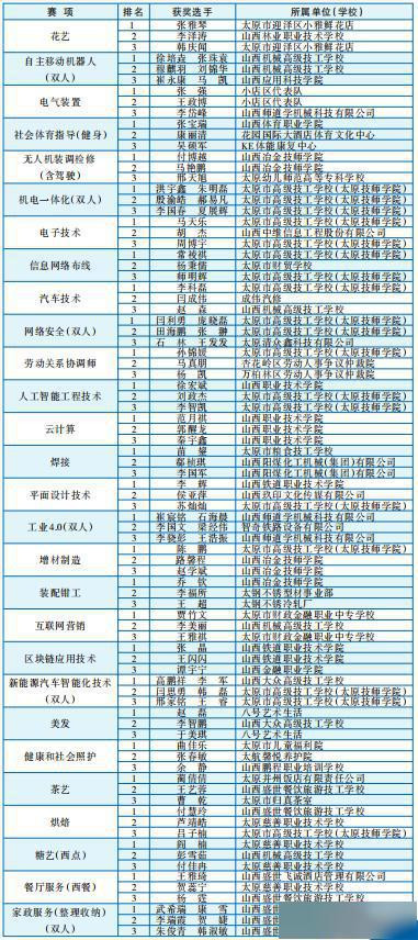 11月15日,大赛矜重开赛。选手们凭借塌实的功底和冒昧的斗志运行了热烈比拼,最终有102名选手分获各赛项前三名。小店区、万柏林区、杏花岭区代表队,夺得团体总分前三名。
