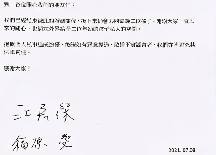 话说过来,福原爱与前夫仳离时闹得东说念主尽王人知,如今江宏杰仍是成为曩昔式,为了一儿一女但愿两东说念主各自安好。