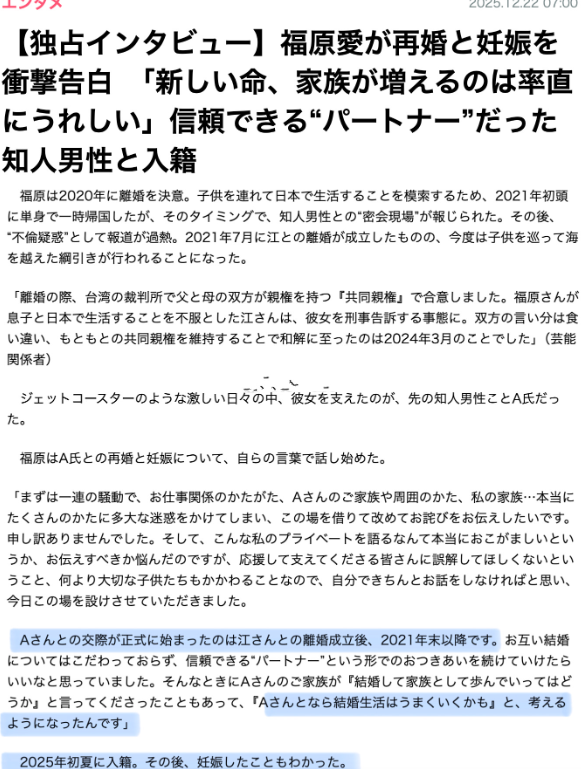 12月22日,日本杂志《女性Seven》刊登对福原爱的长达四页的专访;让东说念主没思到的是福原爱仍然信服爱情,并于2025岁首夏完成成亲登记,然后孕珠。
