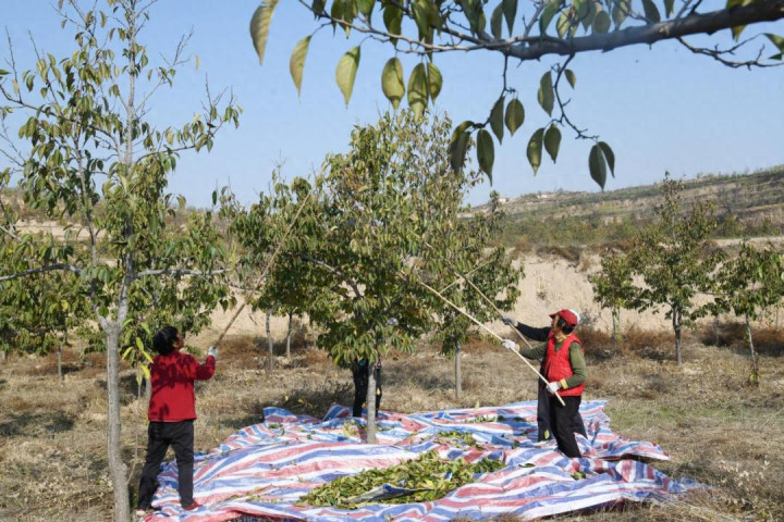 入冬以来,郭家庄镇杜仲基地招引100多名农村劳力在这里采收杜仲籽。“咱们刻下打杜仲籽,一天就打二三百斤,几个东谈主合股一谈打,打打枝、收收籽、捡捡叶,在家亦然没事干,一天能挣七八十元钱。”郭家庄镇柏林村村民巩月莲说。
